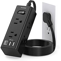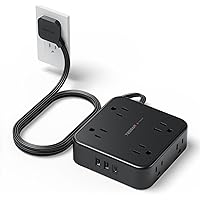 TESSAN Surge Protector Flat Plug Power Strip, Black Extension Cord, 8 AC Outlets, 3 USB Charger(1 USB C Port) 3 Side Outlet Extender, 5 Ft, 900 Joules Protection, Office Supplies, Dorm Essentials